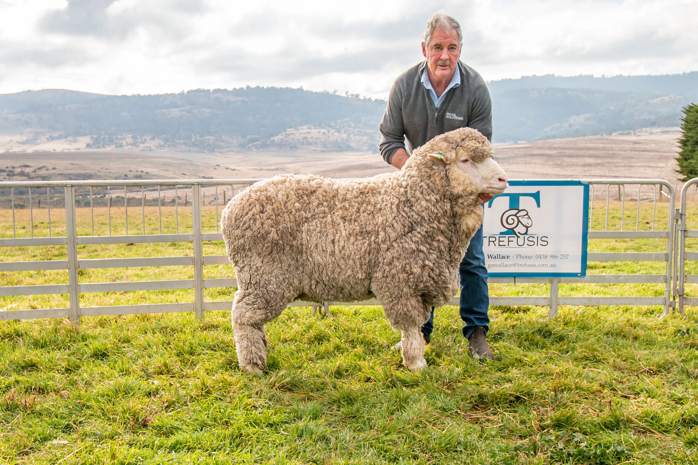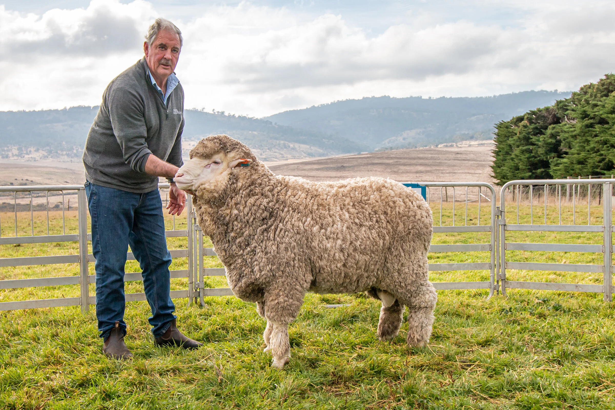 190606 This Poll ram is the best we’ve bred to date, he has great size, body length, structure and topline, with terrific width across the poll. He’s well covered with very bright, well crimped, soft handling wool. He was Supreme Poll Merino Exhibit at Campbell Town 2021 and the Champion All Purpose Ram.